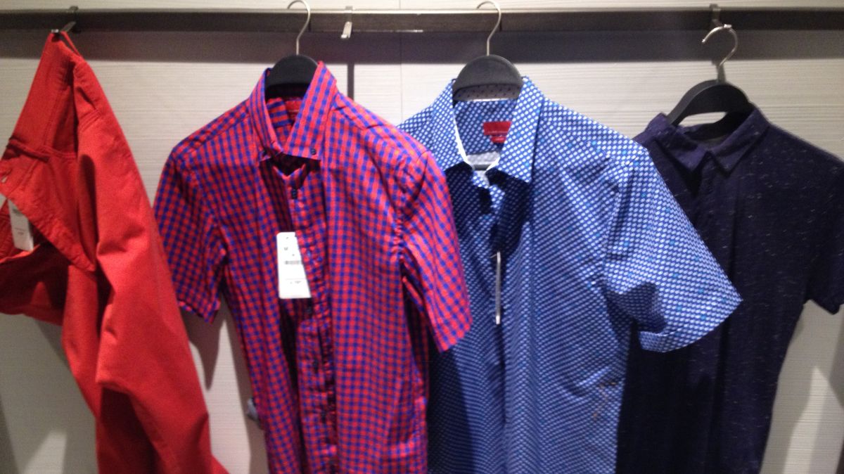 Taschen links, Taschen rechts, wird es immer schwieriger die Arme weiter vollzupacken und mich durch die Kleiderständer zu schlängeln. Ich bin wieder in der Kabine und erneut ist das Licht grauenvoll, der Bauch viel zu weit vorne und die Haare liegen auch nicht richtig.  Hemd ausziehen, T-Shirt überziehen, Shirt ausziehen, anderes Hemd anziehen, Pullover überziehen, Hose ausziehen, Slim-Fit Hose überstreifen, andere kurze Hose anziehen, alles wieder ausziehen, halb nackt bemerken, dass man von außen reinschauen kann. Was ein Stress, ich zittere, ich glaube ich brauche einen Schokoriegel.