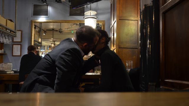Telefonieren am Straßenrand, die Sonne ist schon untergegangen