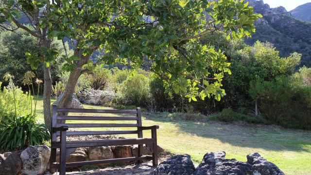 Auf dem Weg nach Hout Bay, sticht der Berg zwischen den Bäumen hervor
