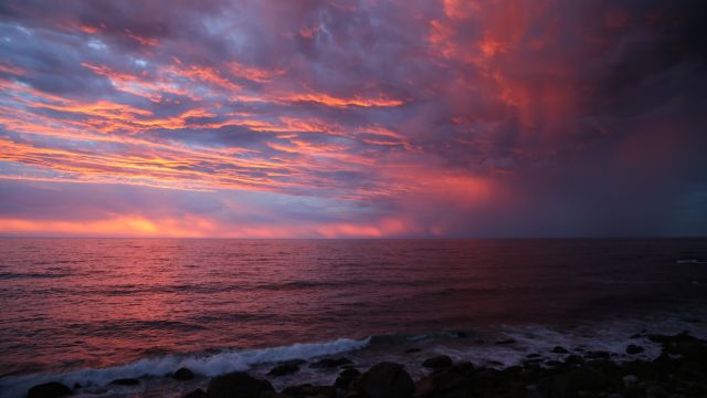 dunkler Himmel, es grollt und donnert, Blitze am Horizont