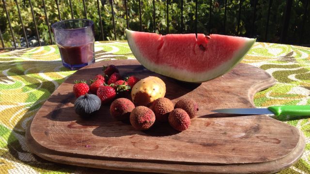 Im Zuge der Selbstoptimierung, vor allem aber weil es einfach schmeckt mache ich mir jeden morgen ein Obst-Frühstück. Melone, Litschi, Kaktusfeige und Feige…